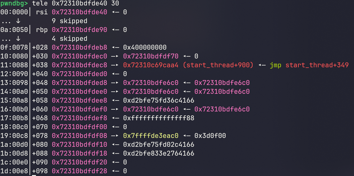 而因为我们实际关闭的是线程2,实际上再次分配的时候仍然是供给线程2的fd而不是复用的4 所以在尝试leak数据前必须要创建出4个线程,最后才能出现两个线程复用fd的情况