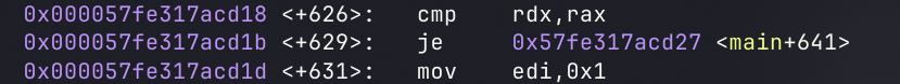 程序在main+626处进行比较
