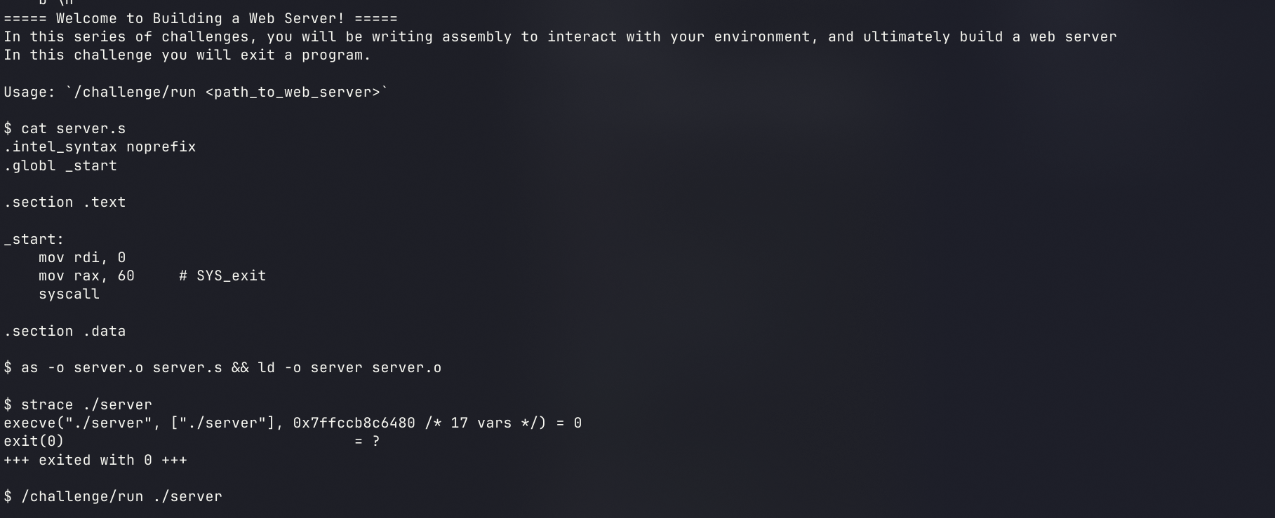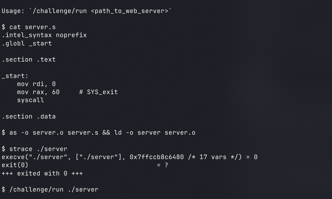 为何一定要用汇编写,我思考了很久这个问题,得出的结果是牛魔的pwncollege想累死我,处理成两个分支,再加上了一些补充的点,这里的汇编全都是用的rsp缓冲区,不涉及栈空间