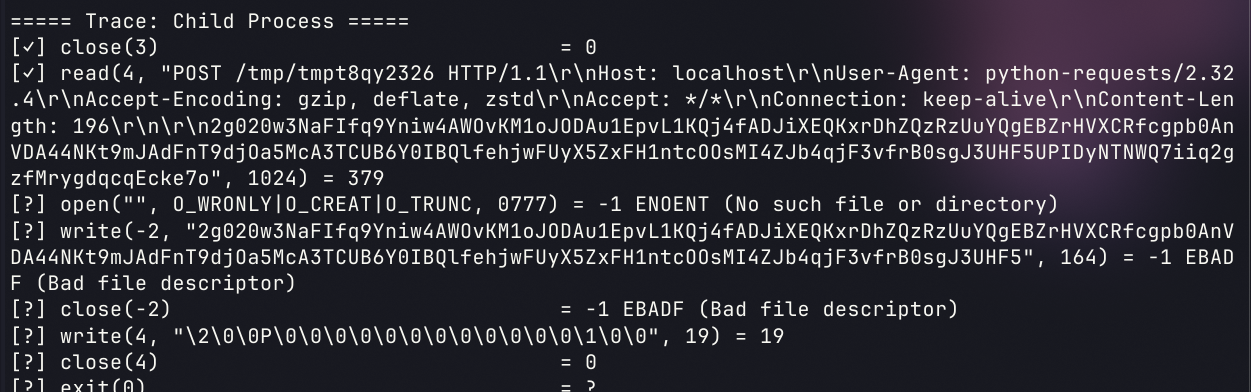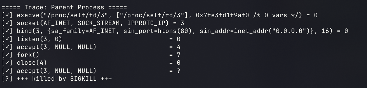检测的时候分为对parent process和child process的检测(卧槽了这挑战检测的代码是怎么用python写的,好牛逼)