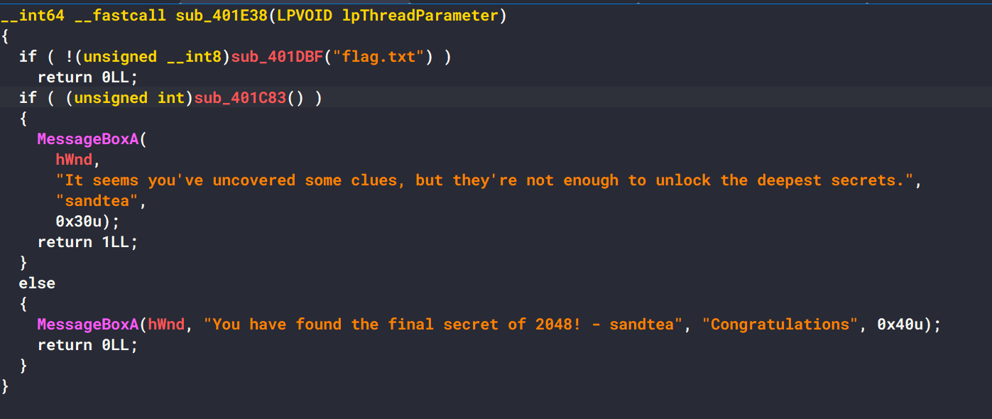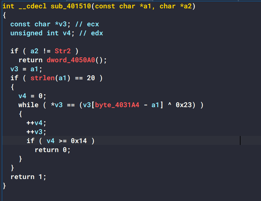 在下面的TLS回调分支进行了两个经典反调试检测 如果检测到调试器存在直接破坏程序内存而崩溃,所以我们找到的函数实际上就是自定义的strncmp函数,其中是真的flag逻辑