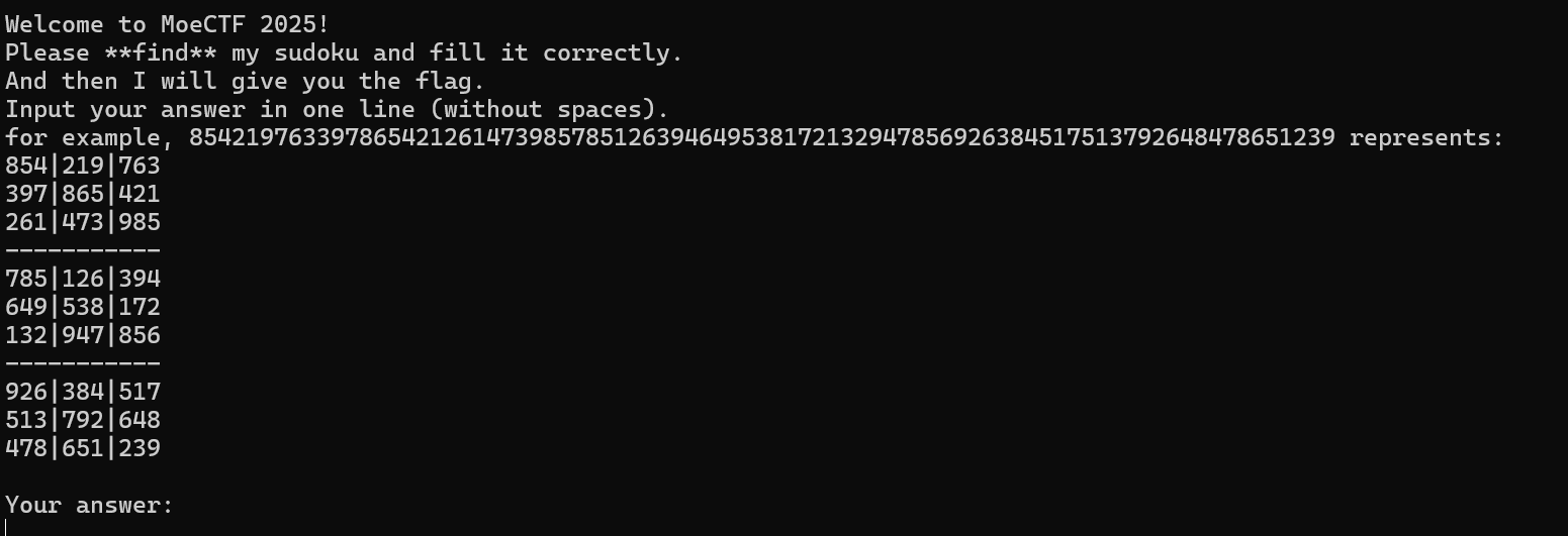 可以看出输入的格式要求为9*9,也就是81个字符(sudoku是数读啊…)