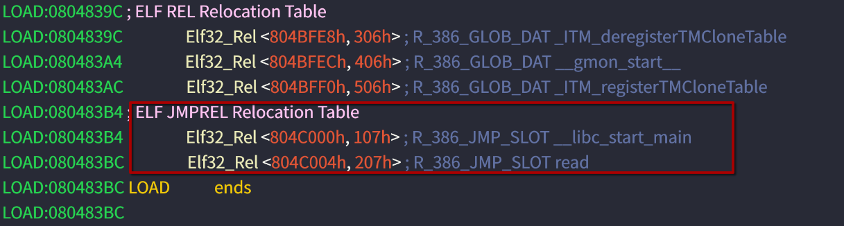typedefstruct{Elf64_Addrr_offset;/* Address */Elf64_Xwordr_info;/* Relocation type and symbol index */Elf64_Sxwordr_addend;/* Addend */}Elf64_Rela;