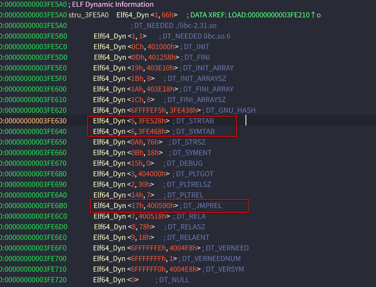 structlink_map*l,ElfW(Word)reloc_arg){constElfW(Sym)*constsymtab=(constvoid*)D_PTR(l,l_info[DT_SYMTAB]);constchar*strtab=(constvoid*)D_PTR(l,l_info[DT_STRTAB]);constPLTREL*constreloc=(constvoid*)(D_PTR(l,l_info[DT_JMPREL])+reloc_offset);// 首先通过参数reloc_arg计算重定位的入口,这里的JMPREL即.rel.plt,reloc_offest即reloc_arg