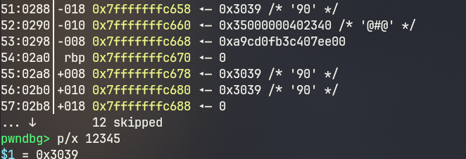 由于实现了一个stack,在这片空间上我们可以利用操作符进行溢出,但是只能输入一次,要精心构建payload,如果我们++两次,那么就会直接触发到canary从而stack smashed