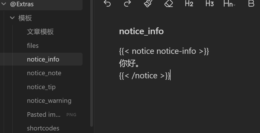 我们在obsidian下创建@Extras,然后存放我们的模板shortcodes